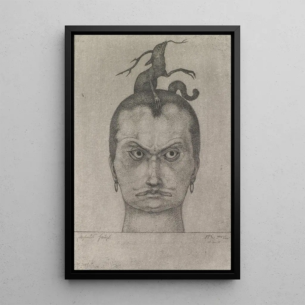 Konsttrycket av "Tête Menaçante" är ett djärvt dekorativt val som kommer att berika ditt hem. Oavsett om det är i ett kontor, ett vardagsrum eller ett sovrum, kommer detta konsttryck att tillföra en touch av originalitet och karaktär till din inredning. Dess tryckkvalitet och trohet mot originalverket garanterar ett starkt visuellt intryck. Genom att integrera detta konsttryck i ditt hem ger du dina väggar en bit som väcker nyfikenhet och främjar samtal, samtidigt som du tillför en konstnärlig dimension till din omgivning.