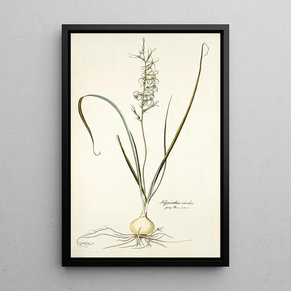 Konsttrycket av Hyacinthus viridis är ett perfekt tillskott till din inredning, oavsett om det är ett vardagsrum, ett kontor eller ett sovrum. Dess livfulla och naturliga färgpalett tillför en känsla av vitalitet till ditt utrymme. Kvaliteten på trycket garanterar en exceptionell trohet mot detaljerna i det ursprungliga verket, samtidigt som det erbjuder en obestridlig estetisk attraktion. Genom att välja detta konsttryck, inte bara förskönar du ditt hem, utan du bjuder också in naturens skönhet att flytta in hos dig.
