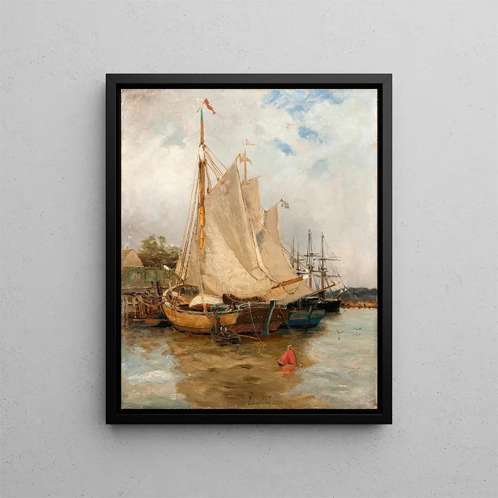 Upptäck den fängslande atmosfären i konsttrycket "I hamnen" av Adolf Fredrik Nordling, ett verk som fångar själva essensen av maritimt liv under 1800-talet. Detta konsttryck ger en fascinerande inblick i en livlig hamnscen, där seglens rörelse och reflektionernas glans i vattnet samverkar för att skapa en slående visuell harmoni. Nordling, med sin mästerlighet i ljus och färg, lyckas framkalla en stämning som är både lugn och dynamisk, och inbjuder betraktaren att fördjupa sig i denna poetiska maritima värld. Stil och unikhet i verket Styrkan i "I hamnen" ligger i dess impressionistiska stil, kännetecknad av livfulla och uttrycksfulla penseldrag som ger liv åt varje element i kompositionen. Fartygen, med färgglada skrov, framträder mot det djupa blå vattnet, medan himlen, fylld av moln, tycks vibrera av ett strålande ljus. Nordling leker med nyanser och kontraster, och skapar ljuseffekter som ger scenen en ny djupdimension. De noggranna detaljerna, såsom människogestalter som sysslar på kajerna, tillför en narrativ dimension till verket och förvandlar ett enkelt landskap till ett levande konstverk fullt av berättelser att upptäcka. Konstnären och hans inflytande Adolf Fredrik Nordling, även om han är mindre känd än vissa av sina samtida, lyckades lämna sitt avtryck under sin tid tack vare sin unika syn på marinkonsten. Född i en period då konsten frigjorde sig från akademiska konventioner, tog han till sig impressionismens strömningar samtidigt som han behöll en personlig touch. Hans verk vittnar om en skarp känslighet för naturen och mänskliga interaktioner, och visar en djup förståelse för den maritima miljön. Nordling har påverkat många konstnärer av sin tid, och hans innovativa tillvägagångssätt fortsätter att inspirera dagens generationer. Hans arbete förblir ett värdefullt vittnesmål om skönheten i de nordiska landskapen och livet som omger dem. En exklusiv väggdekoration signerad Artem Legrand Konsttrycket "I hamnen - Adolf Fredrik Nordling" passar perfekt i en elegant dekorationsstil och erbjuder ett centralt stycke som kommer att höja estetikens nivå i ditt hem. Signerat Artem Legrand är detta verk mycket mer än ett enkelt konsttryck; det är en inbjudan att resa genom tid och rum, en hyllning till skönheten i vardagens scener. Oavsett om det är i ett vardagsrum, ett kontor eller ett sovrum, kommer detta konsttryck att tillföra en touch av elegans och lugn, och förvandla din vägg till en plats för reflektion. Genom att välja detta stycke, väljer du en exklusiv väggdekoration som förenar konst, kultur och känsla, och gör varje blick till ett ögonblick av flykt.