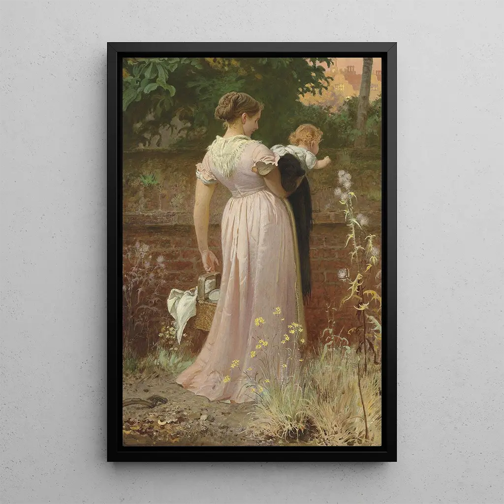 Marcus Stone, verksam under 1800-talet, är känd för sina genre-scener och porträtt. Påverkad av pre-rafaelitiska rörelsen, har han lyckats integrera element av naturen i sina verk, vilket skapar en dialog mellan människan och hennes omgivning. Hans stil kännetecknas av noggrann uppmärksamhet på detaljer och en palett av livfulla färger. Stone har också varit en observant betraktare av vardagslivet, vilket har gjort det möjligt för honom att fånga ögonblick av ömhet och skönhet i sina kompositioner. Hans arbete fortsätter att uppskattas för sin förmåga att framkalla känslor genom bekanta scener.