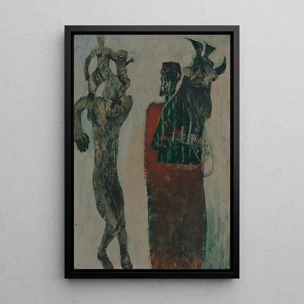 "Idoler hantade" av Frits van den Berghe är ett fängslande konsttryck som utforskar begreppet identitet genom ikoniska figurer och symboliska motiv. Färgpaletten, som växlar mellan mörka nyanser och ljusa ljusglimtar, skapar en atmosfär som är både mystisk och oroande. Personerna, ofta fastfrusna i uttrycksfulla poser, tycks bära på sin historia och väcka dolda minnen. Konstnärens teknik, som skickligt blandar abstraktion och figurativitet, förstärker den emotionella effekten av denna målning och bjuder in till djup introspektion.