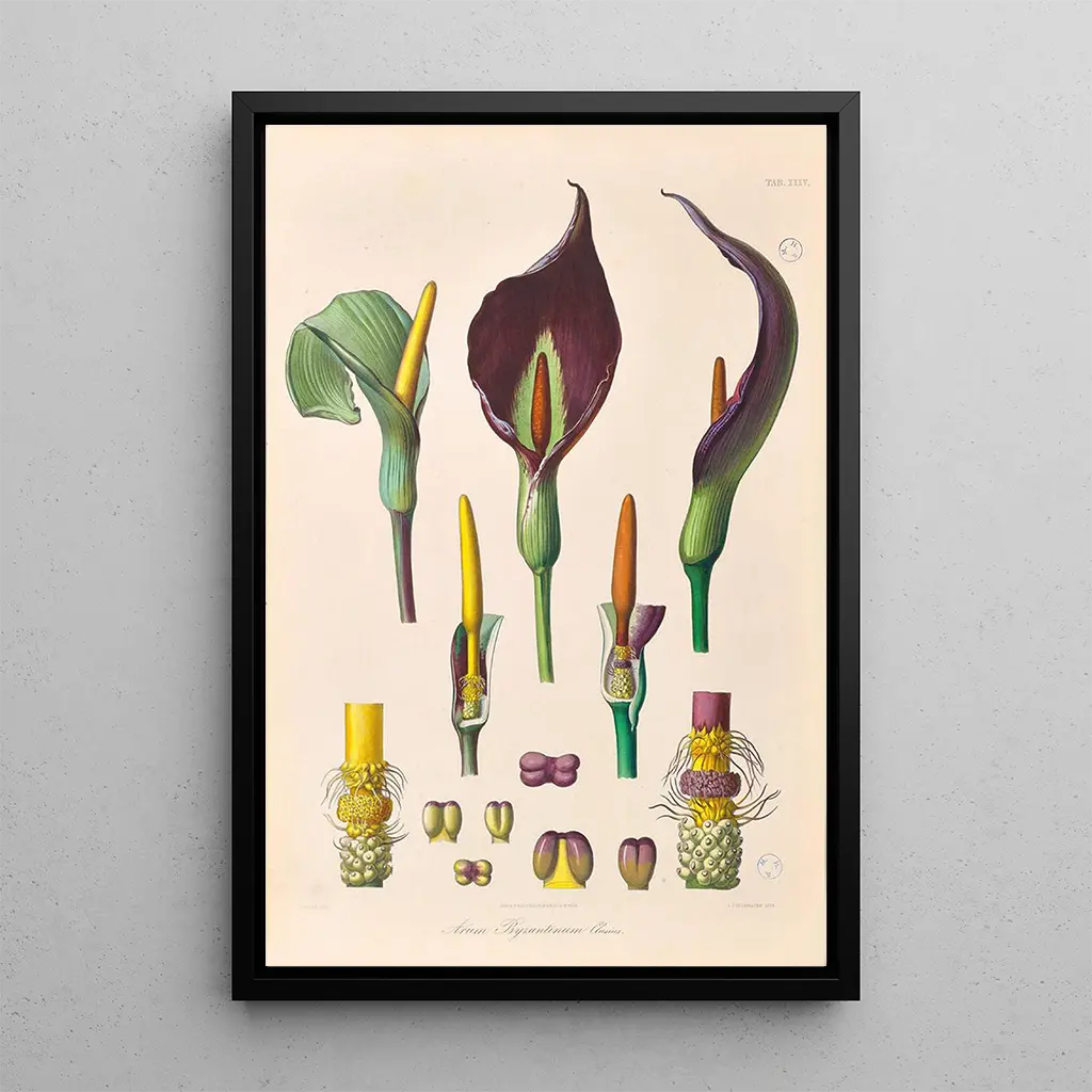 Konsttrycket av "Icones Aroidearum Pl35" är ett perfekt val för att försköna olika utrymmen som vardagsrummet, kontoret eller sovrummet. Dess utskriftskvalitet garanterar trohet mot de ursprungliga detaljerna, vilket gör det möjligt att fullt ut uppskatta skönheten i detta botaniska konstverk. Genom att integrera detta konsttryck i din inredning tillför du en touch av elegans och natur till ditt hem. Den estetiska dragningskraften hos denna väggbonad ligger i dess förmåga att väcka samtal samtidigt som den skapar en lugn och inspirerande atmosfär.