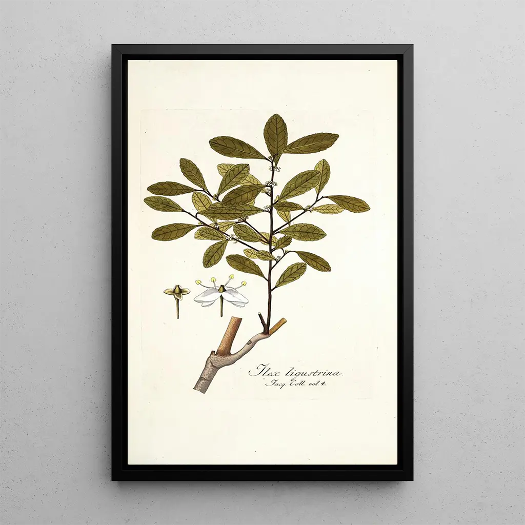 Konsttrycket av "Ilex ligustrina" är ett perfekt val för dem som vill tillföra ett grönt inslag till sitt hem. Oavsett om det är i ett vardagsrum, ett kontor eller ett sovrum, passar denna canvas alla inredningsstilar. Dess utskriftskvalitet garanterar en enastående trohet mot originalverken, vilket gör det möjligt att njuta av detaljernas skönhet. Genom att integrera detta konsttryck i ditt utrymme skapar du en lugn och inspirerande atmosfär, samtidigt som du hyllar naturens rikedom. Det är ett verk som garanterat kommer att dra till sig blickar och väcka sinnena.