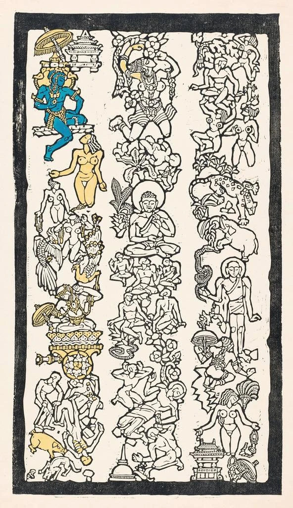 Reijer Stolk, artiste néerlandais du XXe siècle, est connu pour son exploration des motifs et des cultures du monde entier, en particulier ceux de l'Orient. Influencé par ses voyages en Inde et en Asie, il a su intégrer des éléments traditionnels dans son travail, tout en y ajoutant une touche contemporaine. Son style, caractérisé par une attention minutieuse aux détails et une palette de couleurs audacieuse, fait de lui un représentant unique de l'art décoratif. À travers ses œuvres, Stolk nous offre une fenêtre sur des traditions riches et variées, tout en soulignant l'importance de la diversité culturelle dans l'art.