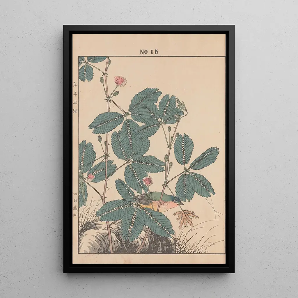 Den konsttryck Keinen kach gafu Pl017 av Imao Keinen är ett livfullt verk som lyfter fram den japanska floran. De ljusa färgerna och de dynamiska blomster-motiven flätar samman för att skapa en harmonisk och fängslande komposition. Tekniken för ukiyo-e, som behärskas av Keinen, gör det möjligt att återge varje detalj med en anmärkningsvärt finstämdhet, vilket framkallar lätthet och skönhet hos blommorna. Denna duk, ett äkta hyllning till naturen, inbjuder till en lugn och poetisk eftertanke, och förflyttar betraktaren till en frodig trädgård.