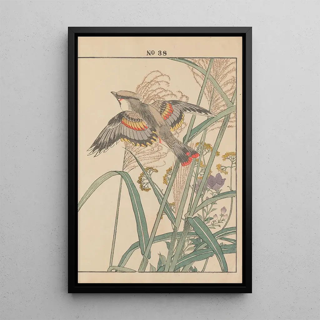 Keinen kach gafu Pl042-konsttrycket för oss till en värld där årstiderna växlar med elegans. De livfulla nyanserna av blommor och lövverk framkallar den japanska naturens rikedom och fångar varje säsongs essens. Tekniken med ukiyo-e, som är karakteristisk för japansk konst, gör det möjligt att framhäva de delikata detaljerna och de subtila texturerna. Denna tavla, med sin lugna och poetiska atmosfär, inbjuder till en kontemplativ flykt och hyllar livets flyktiga skönhet.