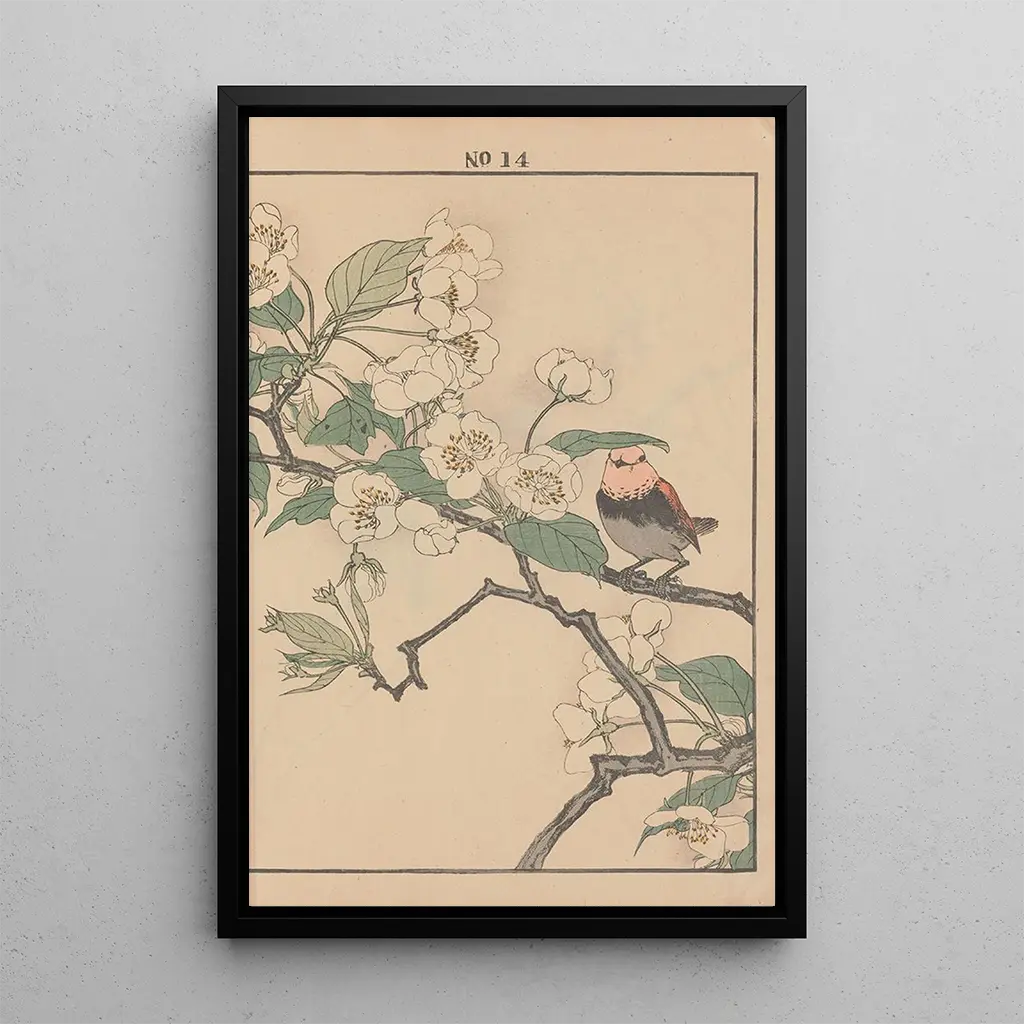 Keinen kach gafu Pl060 är ett konsttryck som hyllar naturens skönhet genom noggranna detaljer och en palett av delikata färger. Varje element, från blommor till fåglar, återges med en precision som inbjuder till förundran. Tekniken med ukiyo-e på papper, typisk för Edo-perioden, ger denna målning en lugnande och kontemplativ atmosfär. Skiftningarna av grönt och rosa vävs samman harmoniskt, vilket skapar en levande tavla som nästan verkar andas. Detta konsttryck är en sann hyllning till frid och harmoni som man finner i naturen.