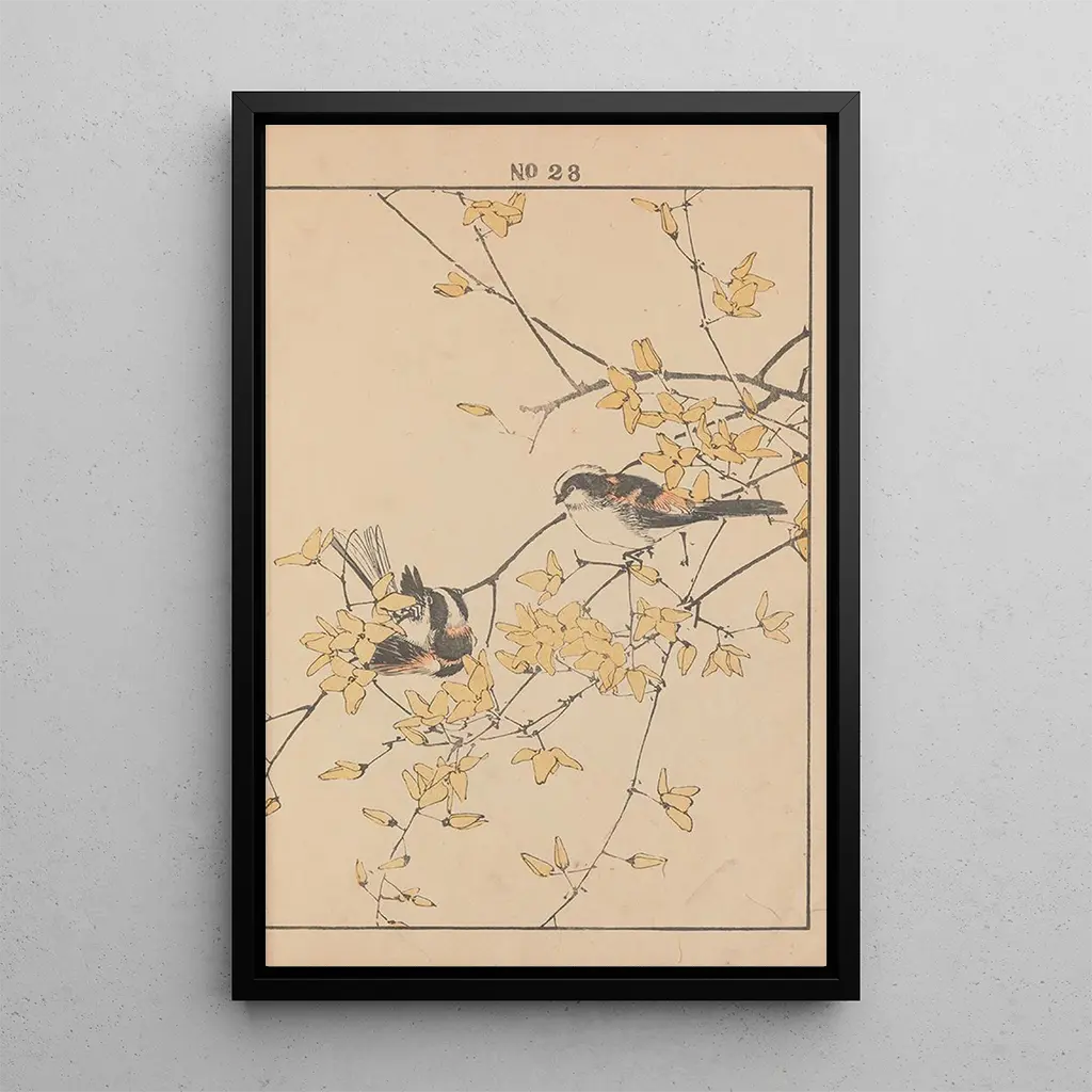 Konsttrycket Keinen kach gafu Pl072 av Imao Keinen framkallar en värld där naturen blomstrar i en oändlig finhet. Pastellfärger blandas med grace, vilket skapar en lugnande atmosfär. Tekniken för japansk ukiyo-e, med sina noggranna detaljer, gör det möjligt att känna lättheten hos blommor och blad. Varje element tycks dansa på duken, inbjudande betraktaren att fördjupa sig i en värld av frid och skönhet. Detta verk är en sann hyllning till naturen, där varje penseldrag berättar en historia.
