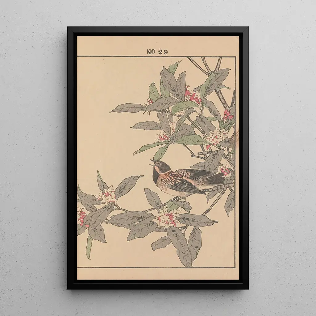 Imao Keinen, verksam under Meiji-perioden, är erkänd som en av de främsta mästarna inom japanska konsttryck. Hans verk utmärks av ett innovativt tillvägagångssätt som förenar tradition och modernitet. Påverkad av de kulturella förändringarna under sin tid, lyckades Keinen fånga naturens skönhet med en unik känslighet. Hans verk, ofta inspirerade av fauna och flora, vittnar om en djup koppling till sin omgivning. Detta konsttryck hyllar hans exceptionella talang och hans inflytande på japansk konst, och ger en värdefull inblick i hans arv.