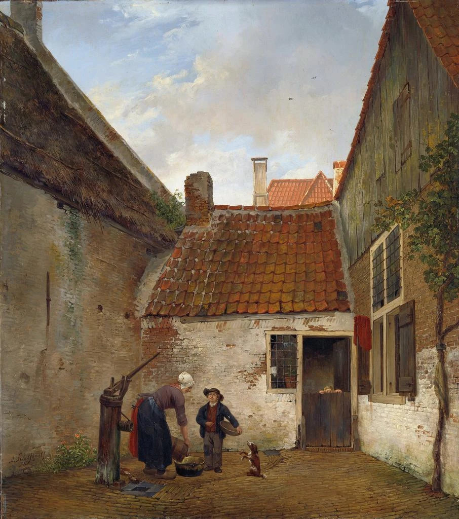 Reproduktion av "Innergård - Andreas Schelfhout" av Artem Legrand framstår som