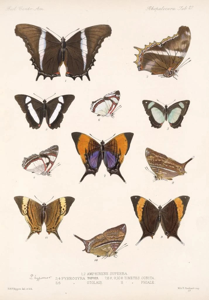 Konsttrycket Insecta Lepidoptera Rhopalocera Pl 028 av Frederick DuCane Godman är en verklig hyllning till mångfalden och ömtåligheten hos fjärilar. Denna konsttryck, rik på detaljer, visar en palett av livfulla färger som framkallar lätthet och grace hos dessa fascinerande insekter. Nyanser av blått, gult och orange blandas harmoniskt och skapar en atmosfär som är både glad och lugnande. Lithografitekniken, som används av Godman, gör det möjligt att återge varje motiv med en anmärkningsvärt precision, vilket bjuder in betraktaren att fördjupa sig i en värld där naturen avslöjar sin fulla prakt.