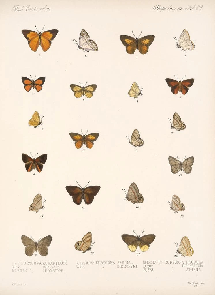 Frederick DuCane Godman, naturalist och konstnär från 1800-talet, är erkänd för sina bidrag till studiet av insekter, särskilt fjärilar. Hans verk är en del av den viktorianska rörelsen, där konst och vetenskap möts för att utforska biologisk mångfald. Påverkad av sina resor och sina fältobservationer, lyckades Godman fånga skönheten hos Lepidoptera med vetenskaplig precision. Hans illustrationer, som den i Insecta Lepidoptera Rhopalocera Pl 040, vittnar om hans engagemang för dokumentation av naturen, samtidigt som de erbjuder en raffinerad estetik som fortsätter att inspirera konst- och naturvetenskapsentusiaster.