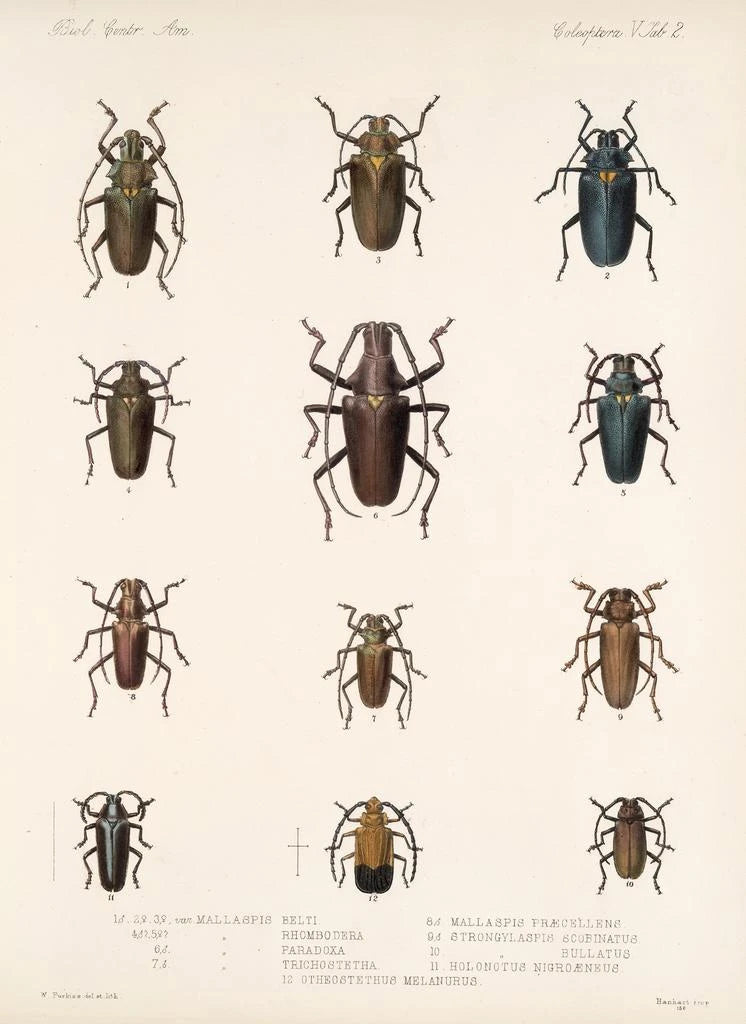 Målning Insecta Coleoptera Pl 208 - Frederick DuCane Godman