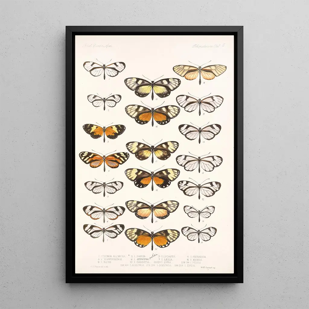 L'œuvre "Insecta Lepidoptera Rhopalocera Pl 005" de Frederick DuCane Godman est une célébration visuelle de la diversité fascinante des papillons. Cette konsttryck se caractérise par ses couleurs éclatantes et sa composition harmonieuse, qui mettent en valeur la beauté naturelle de ces insectes. Chaque détail est soigneusement rendu, des motifs complexes des ailes aux nuances subtiles des couleurs. L'atmosphère qui se dégage de cette œuvre est à la fois scientifique et artistique, offrant une invitation à explorer le monde des lépidoptères avec émerveillement et curiosité.