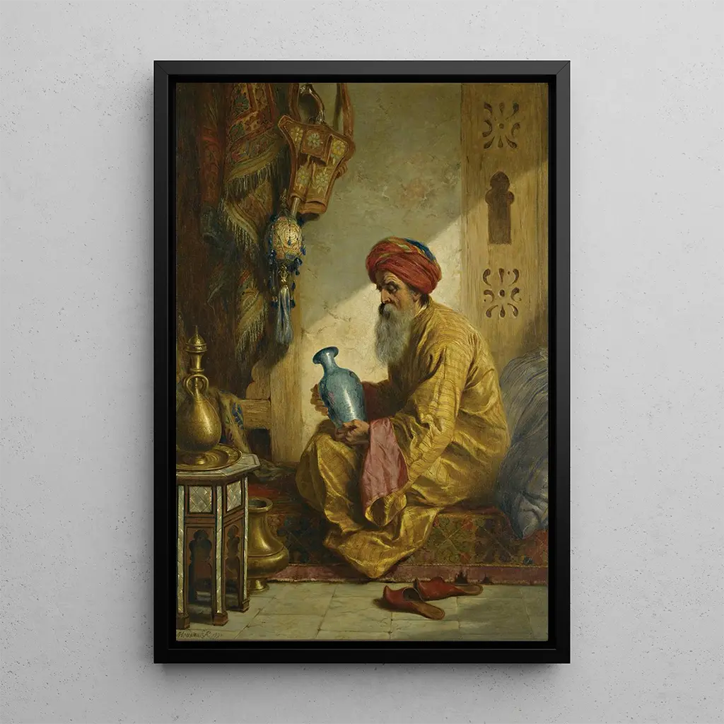 John Adam Houston, verksam på 1800-talet, är en brittisk konstnär vars arbete är en del av den victorianska rörelsen. Påverkad av naturen och vardagsföremål, har han utvecklat en stil som förenar realism och poetisk känsla. Houston utbildades vid Royal Academy of Arts, där han förfinade sitt hantverk innan han blev känd för sina stilleben och genrebilder. Hans konstverk vittnar om en tid då konsten skulle fånga livets flyktiga skönhet, samtidigt som den speglar tidens estetiska värderingar. "Inspektion av vasen" passar perfekt in i denna tradition, och hyllar skönheten hos de föremål som omger oss.