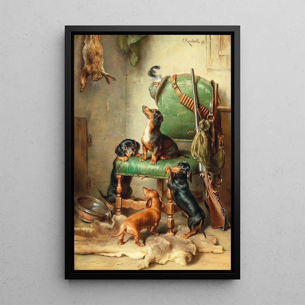 Carl Reichert, peintre autrichien du XIXe siècle, est reconnu pour sa capacité à capturer l'essence même des animaux dans leur habitat naturel. Influencé par le mouvement romantique, il s'inscrit dans une tradition artistique qui valorise la nature et les émotions humaines. Ses œuvres, souvent empreintes de réalisme, témoignent d'une observation minutieuse et d'une profonde empathie pour les créatures qu'il dépeint. À travers sa carrière, Reichert a su se faire une place de choix dans le monde de l'art animalier, laissant un héritage durable qui continue d'inspirer les artistes contemporains.
