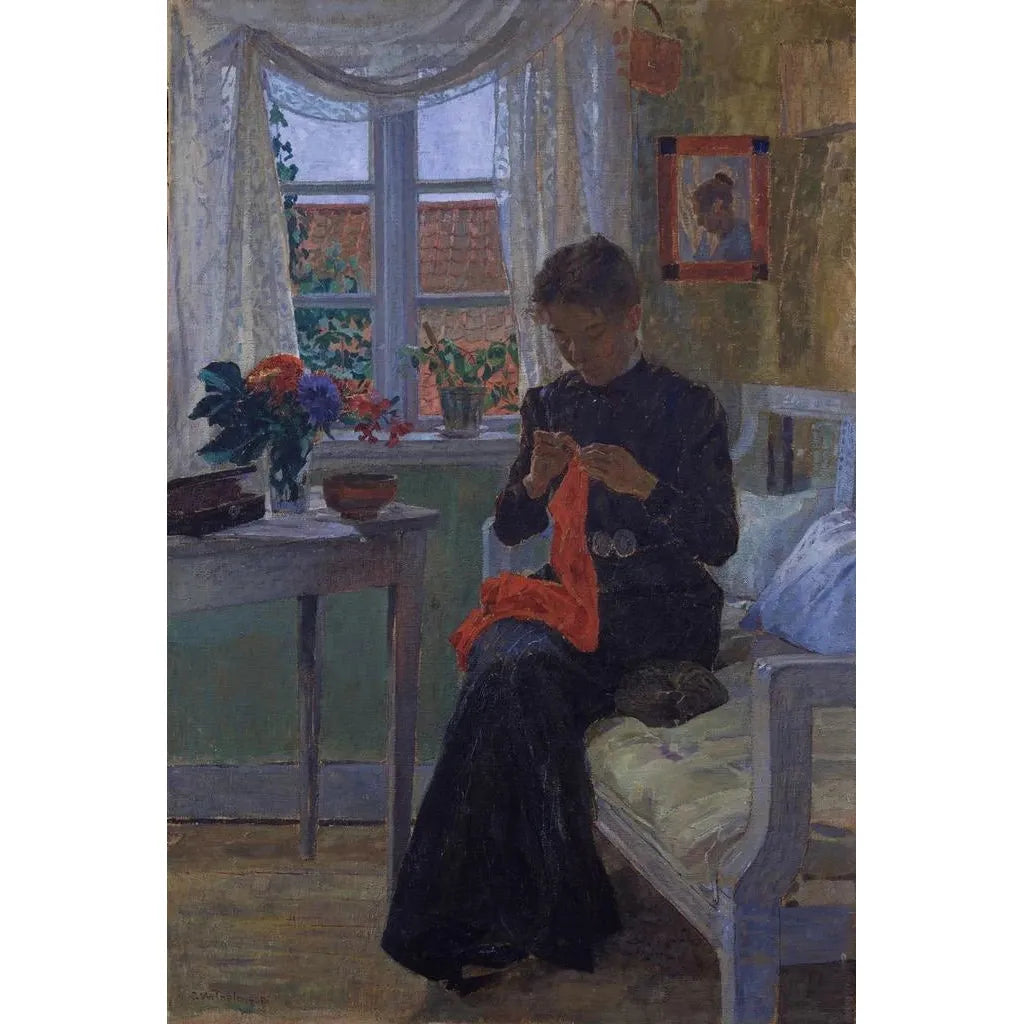 Carl Wilhelmson är en framstående figur inom svensk konst från början av 1900-talet, erkänd för sin förmåga att förena impressionismen med element från den nordiska traditionen. Född 1866, påverkades han av sina resor genom Europa, samtidigt som han förblev djupt förankrad i sitt skandinaviska arv. Hans verk, som Intérieur Bohuslän, vittnar om hans kärlek till naturen och det vardagliga livet, samtidigt som de lyfter fram skönheten i svenska landskap och interiörer. Wilhelmson lyckades föreviga enkla livsmomentsbilder, fyllda av känsla, vilket gör honom till en oumbärlig konstnär i sin tid.