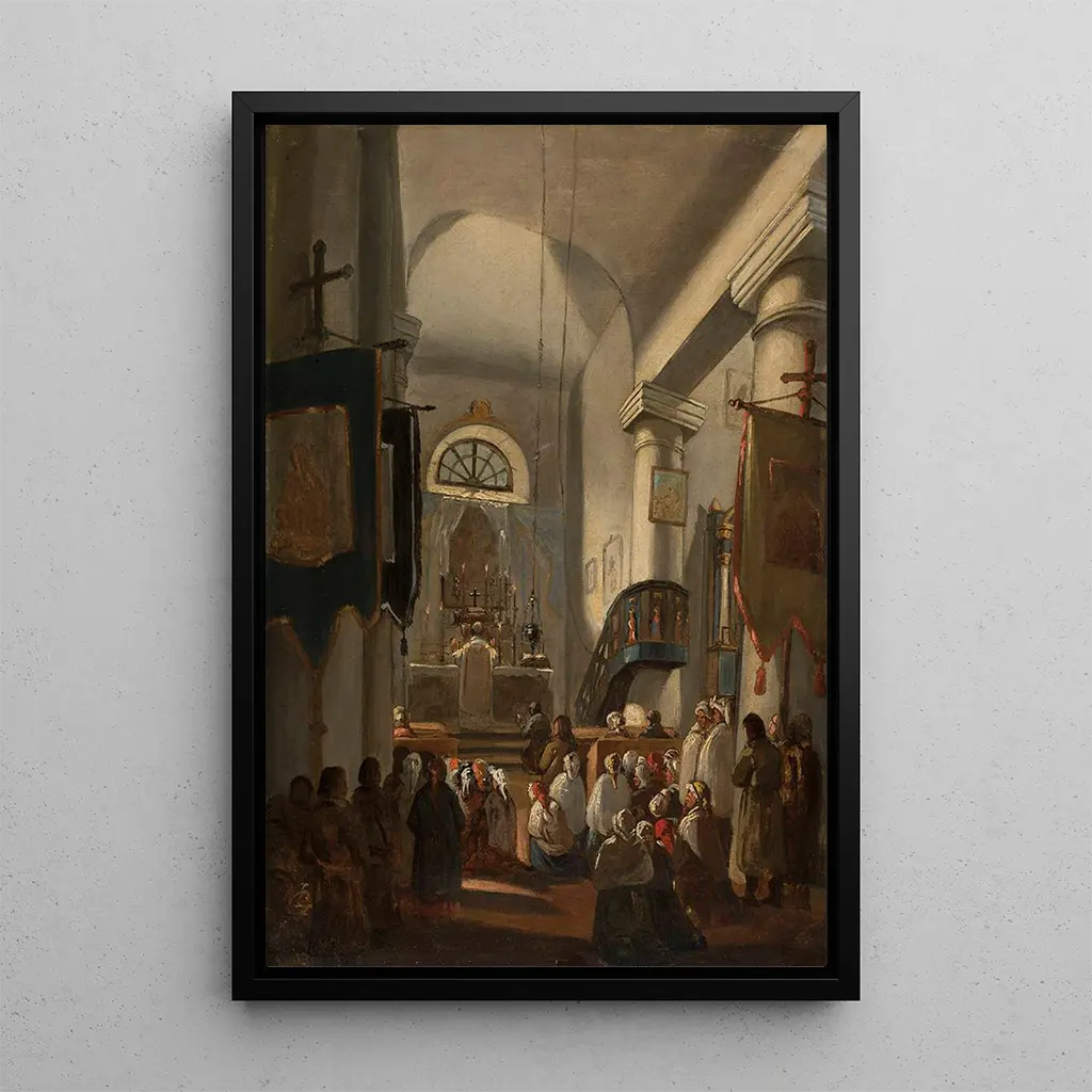 Målning av interiör av kyrka med figurer - Ignacy Gierdziejewski | Konsttryck
