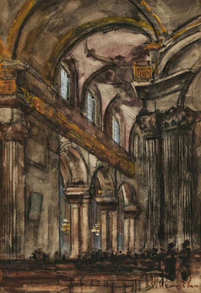 Målning inomhus av kyrka - Sir William Eden | Konsttryck