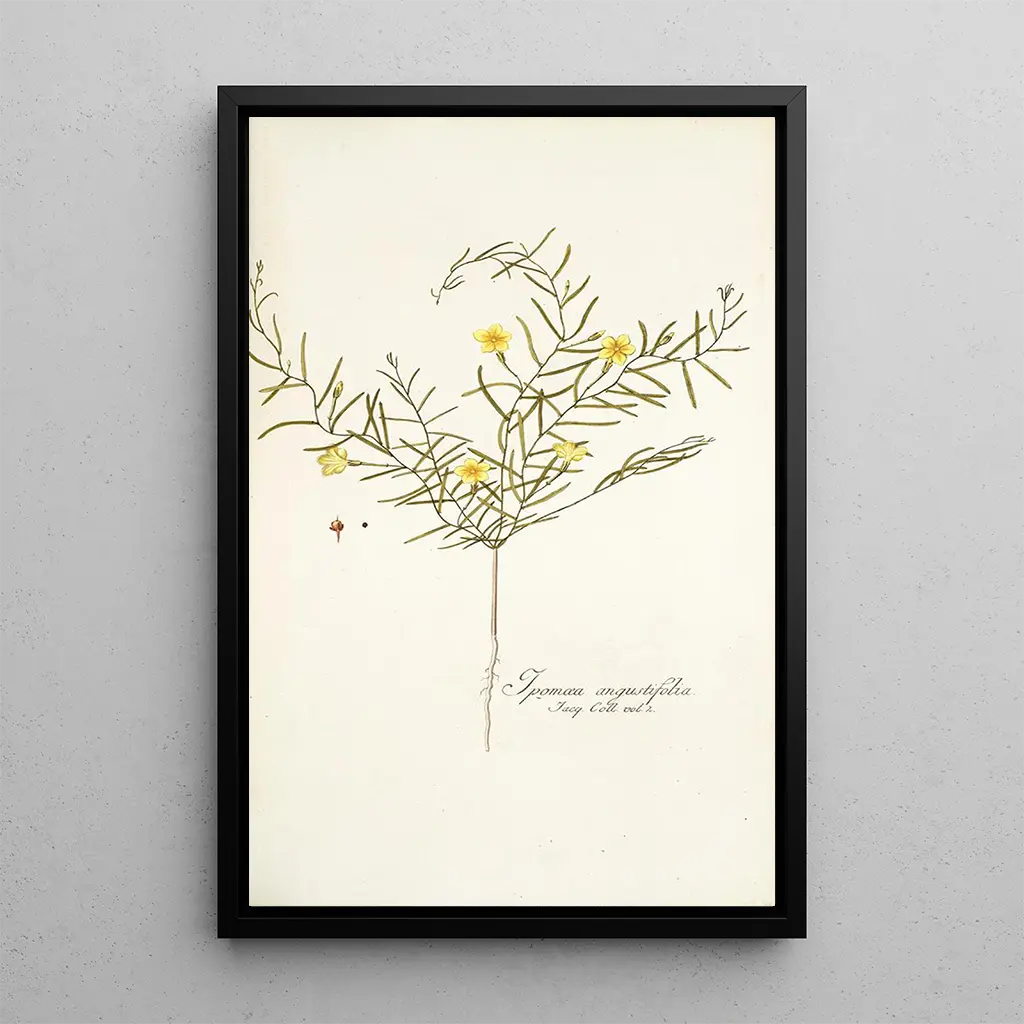 Konsttrycket av "Ipomoea angustifolia" är ett perfekt dekorativt val för att berika ditt hem, oavsett om det är i ett vardagsrum, ett kontor eller ett sovrum. Dess utskriftskvalitet och trohet mot de ursprungliga färgerna gör det till ett fängslande konsttryck som drar till sig blickar. Detta konsttryck tillför en touch av natur och lugn till ditt utrymme, samtidigt som det hyllar biodiversitetens skönhet. Med sin obestridliga estetiska attraktion kommer detta konsttryck att tilltala konst- och botanikkännare, samtidigt som det tillför en elegant touch till din inredning.