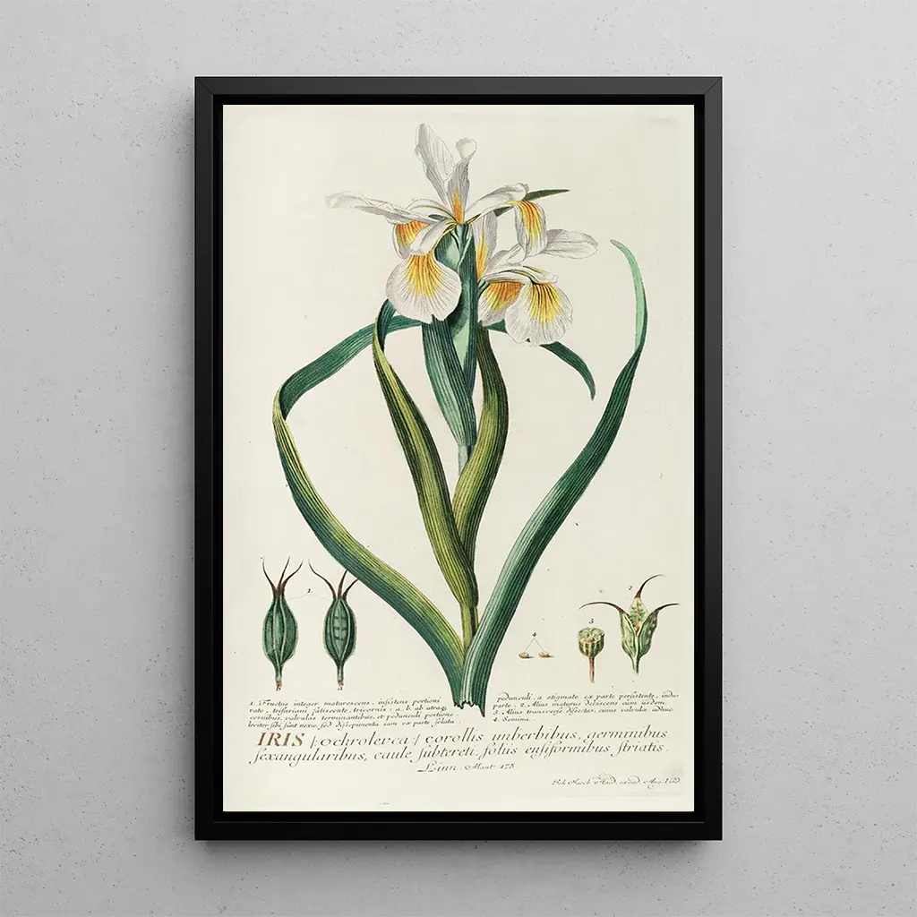 Konsttrycket av "Iris" är ett utmärkt dekorativt val för att tillföra naturens skönhet till ditt hem. Oavsett om det är i ett vardagsrum, ett kontor eller ett sovrum, kommer denna tavla att fängsla blickarna och väcka beundran. Dess konsttrycks kvalitet garanterar en trohet mot färger och detaljer i det ursprungliga verket, vilket möjliggör att fullt ut njuta av dess estetiska attraktion. Genom att integrera detta verk i din inredning väljer du ett stycke som kombinerar elegans och blomstercharm, samtidigt som du hyllar Georg Dionysius Ehrets konstnärliga arv.