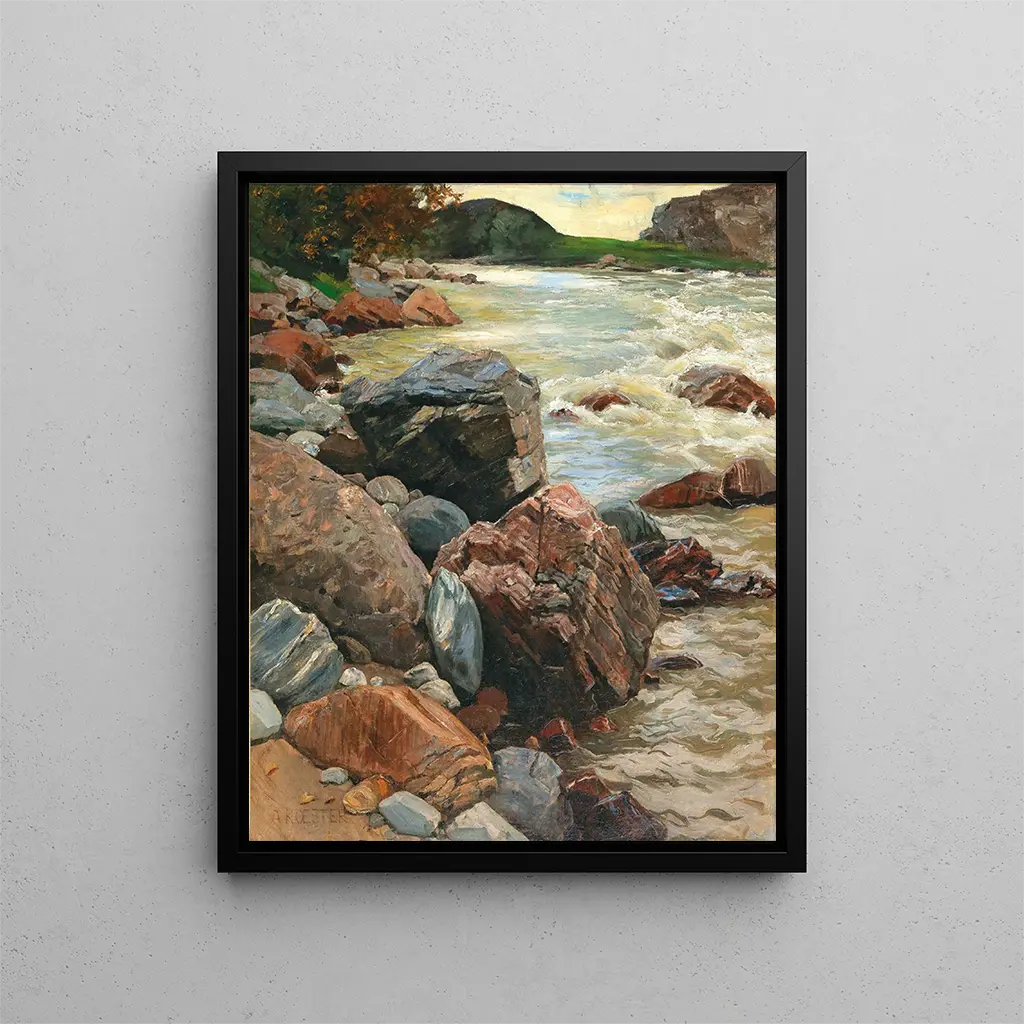 Inom konstvärlden lyckas vissa verk fånga inte bara ett ögonblick, utan även essensen av en plats, en atmosfär. "L'Isarco i Sydtyrol" av Alexander Koester är ett av dessa verk som, genom sin realism och djup, förflyttar betraktaren till hjärtat av de förtrollande landskapen i Alperna. Denna målning, både livfull och lugn, framkallar den vilda skönheten i naturen, samtidigt som den lyfter fram den harmoniska relationen mellan människan och hennes omgivning. När man betraktar detta verk känner man en inbjudan att fly, att utforska Isarco's stränder, att förlora sig i fjällens stillhet.