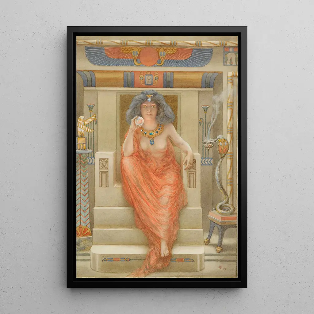 Konsttrycket av Déesse Isis av Armand Point är ett fascinerande verk som hyllar den egyptiska mytologin. Isis, gudinna för moderskap och magi, är avbildad med majestätisk grace, omgiven av symboler för fertilitet och återfödelse. De varma och gyllene färgerna återspeglar rikedomarna från det gamla Egypten, medan den delikata tekniken av Point framhäver de raffinerade detaljerna i klänningen och ornamenten. Atmosfären som avtecknar sig i denna målning är både lugn och kraftfull, och bjuder in betraktaren att dyka in i en mystisk värld där den kvinnliga gudomligheten regerar som härskare.