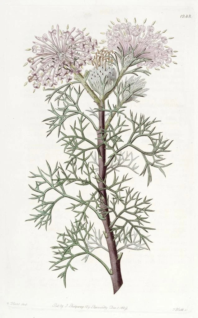 L'œuvre "Isopogon elegant" av Sydenham Edwards är en fascinerande representation av denna unika växt, som är ursprunglig i Australien. De livfulla färgerna och de geometriska formerna på blommorna fångar ögat och framkallar en känsla av exotism och friskhet. Graveringstekniken, som behärskas av Edwards, gör det möjligt att exakt återge detaljerna i denna art, samtidigt som den skapar en ljus och glad atmosfär. Varje blomblad tycks dansa under ljuset och bjuder in betraktaren att uppskatta den australiensiska biologiska mångfalden.