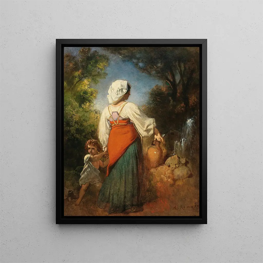 I 1800-talets konstlandskap utmärker sig vissa verk genom sin förmåga att fånga ögonblick av liv fyllda av ömhet och enkelhet. "Femme italienne avec enfant à la fontaine" av Anton Romako är ett av dessa verk som inte saknar att väcka känslor. Denna idylliska scen, där modern och hennes barn möts vid en fontän, förmedlar en varm intimitet, ett ögonblick som är svävande i tiden. Genom detta verk lyckas Romako transcendera vardagens banalitet för att erbjuda en poetisk vision av familjelivet, rotad i den italienska kulturen.