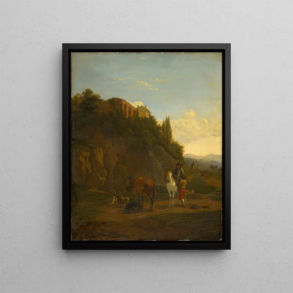 Konsttryck | Italienskt landskap med resenärer - Anonym