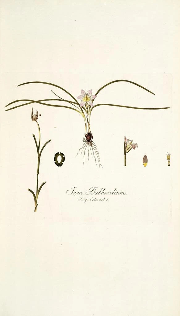 Nikolaus Joseph Freiherr von Jacquin, botanist och konstnär från 1700-talet, präglade sin tid med sina bidrag till botanik och konst. Hans resor runt om i världen gjorde det möjligt för honom att upptäcka och illustrera sällsynta växtarter, vilket gjorde honom till en pionjär inom botanisk illustration. Hans stil, som kombinerar vetenskaplig precision med konstnärlig känsla, är representativ för upplysningens anda. "Ixia bulbocodium" vittnar om hans engagemang för att hylla naturens skönhet samtidigt som han berikar sin tids botaniska kunskap.