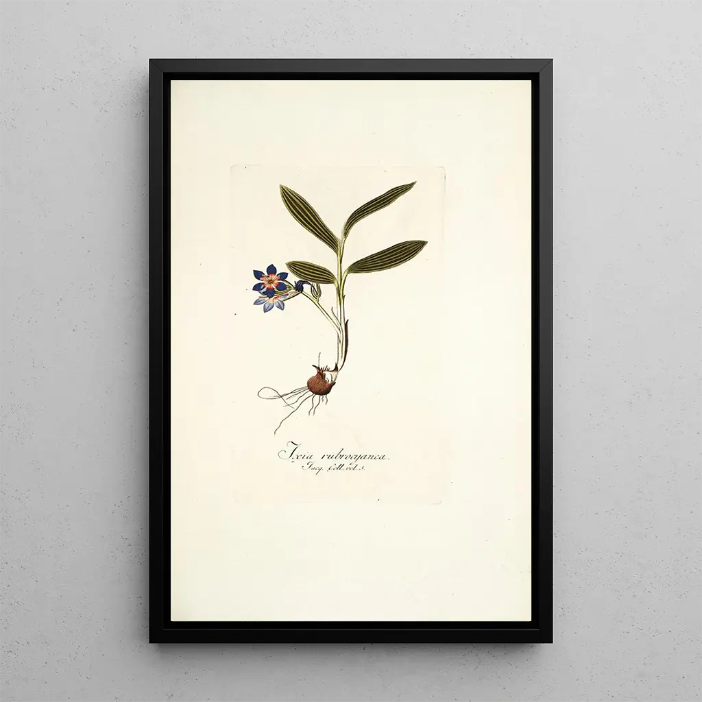 Konsttrycket av "Ixia rubrocyanea" är ett perfekt dekorativt val för olika utrymmen, oavsett om det är ett vardagsrum, ett kontor eller ett sovrum. Den livfulla färgpaletten ger en frisk och vital känsla till vilken inredning som helst. Dessutom garanterar kvaliteten på utskriften en enastående trohet mot detaljerna i originalverket, vilket gör att man kan njuta av hela skönheten i denna målning. Genom att integrera detta konsttryck i din inredning ger du ditt utrymme en touch av elegans och ett litet hyllning till naturen, samtidigt som du berikar din miljö med ett meningsfullt konstverk.