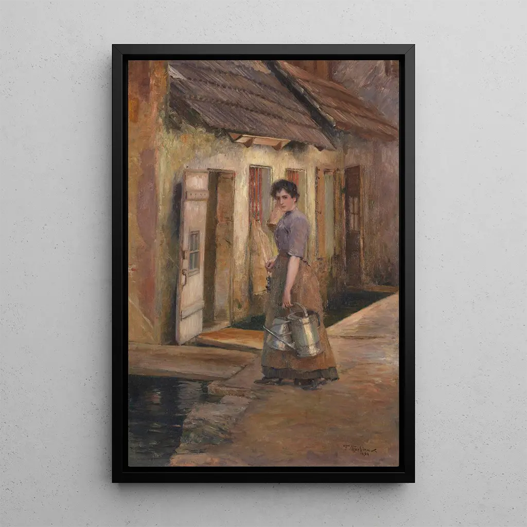 Franz Skarbina, född 1849 i Berlin, är en ikonisk figur inom tysk realism. Påverkad av sina tidiga mästare utvecklade han en stil som kombinerar precision och känslighet. Hans verk, ofta centrerade kring vardagliga teman, vittnar om en djup förståelse för mänskligheten. "Jeanette" är ett perfekt exempel på hans talang, och illustrerar inte bara den fysiska skönheten, utan också själva essensen av kvinnlighet. Genom sina porträtt har Skarbina lyckats bevara flyktiga ögonblick, vilket gör honom till en oumbärlig konstnär under 1800-talet.