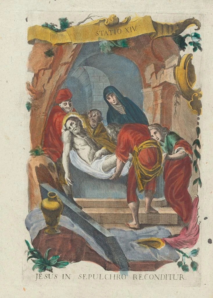 Målning av Jesus som placeras i gravkammaren - Remondini-familjen | Konsttryck
