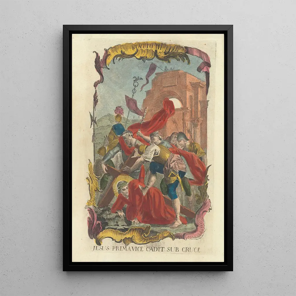 Målning av Jesus som faller för första gången under korset - Remondini-familjen | Konsttryck