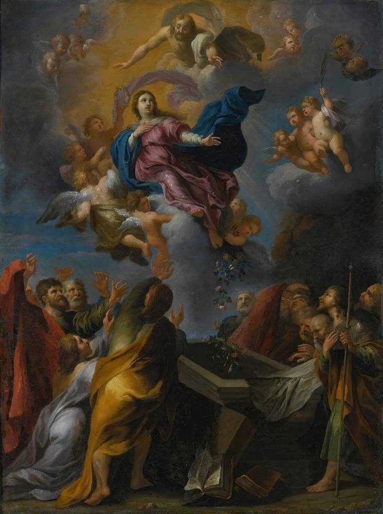 L'Assomption de la Vierge, ett ikoniskt verk från den bolonaiska skolan, fascinerar med sin förmåga att överskrida tiden och fånga den kristna andlighetens essens. Denna mästerliga framställning av Jungfru Maria, upphöjd till himlen, väcker en känsla av höjning och lugn, och fördjupar betraktarens intryck i en värld där gudomlighet och mänsklighet möts. Den dynamiska kompositionen och den livfulla färgpaletten inbjuder till djup eftertanke, och avslöjar troens subtiliteter genom konstnärens prisma. Detta konstverk, med sitt visuella och emotionella intryck, representerar barockens höjdpunkt, en rörelse som präglade sin tid med sin djärvhet och rika berättande.
