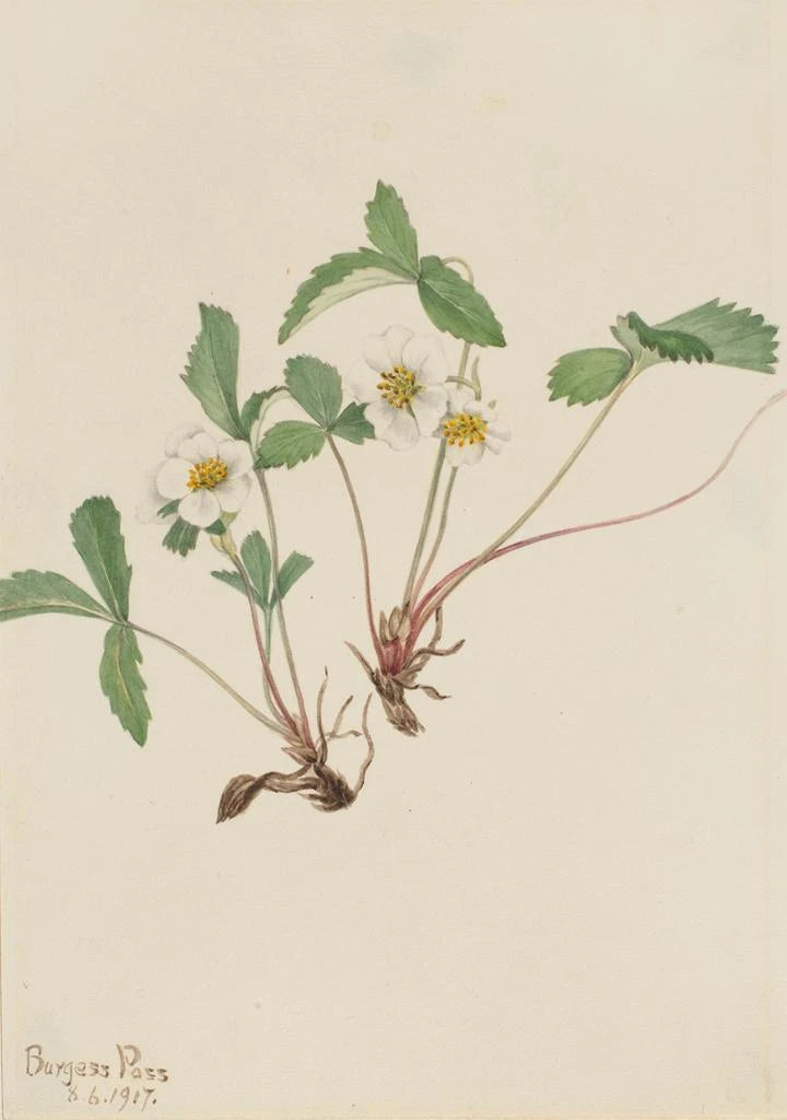 Konsttryck | Ljus rosa jordgubbe Fragaria glauca - Mary Vaux Walcott