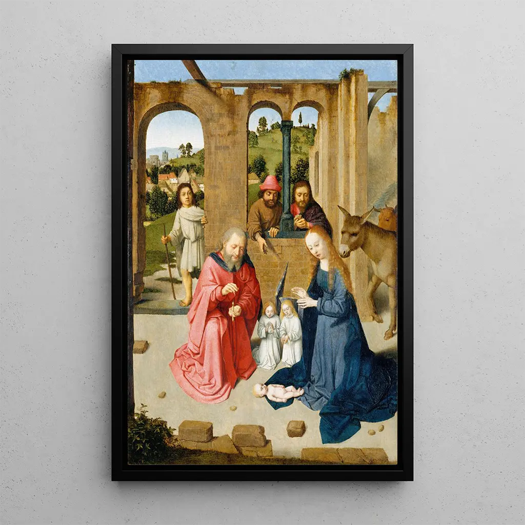 La Nativité av Gerard David är ett verk som framkallar mildhet och fridfullhet i Kristi födelse. De varma och ljusa nyanser, kombinerade med delikata detaljer, skapar en lugn och tröstande atmosfär. Kompositionen framhäver huvudpersonerna, omgivna av ett gudomligt ljus som tycks emanera från Jesusbarnet. Figurerna uttrycker ömhet och förundran, och bjuder in till en djup reflektion över detta heliga ögonblick, där mänskligheten möter det gudomliga i en intim och familjär miljö.