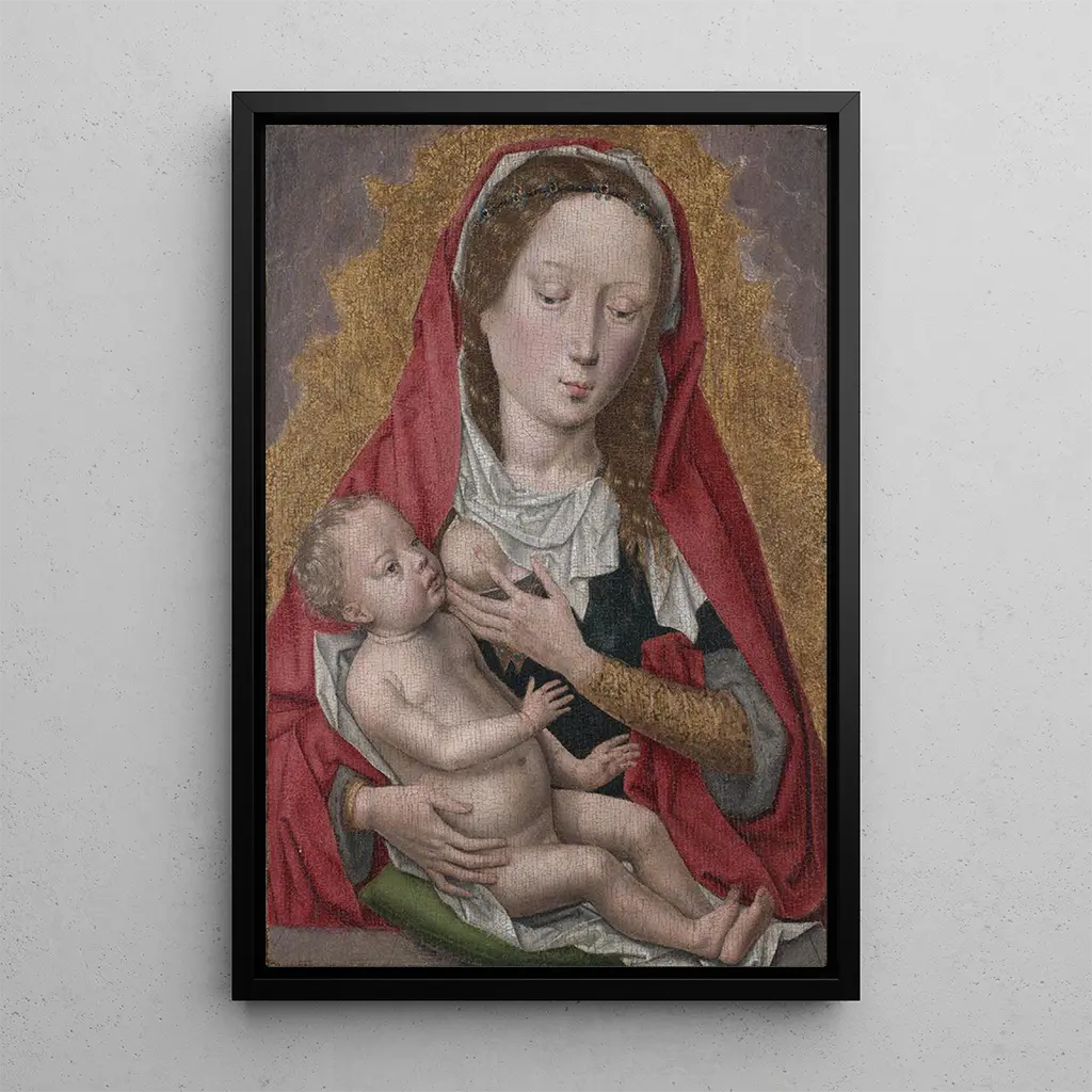 I "Vierge à l'Enfant" ger Hans Memling en rörande skildring av den heliga moderskapet. Kompositionen, centrerad kring Jungfrun och hennes barn, utstrålar en atmosfär av mildhet och lugn. Pastellfärger, delikata och harmoniska, skapar en känsla av frid, medan det mjuka ljuset framhäver ansiktena fyllda av ömhet. Memlings teknik, som förenar realism och spiritualitet, gör det möjligt att känna den ovillkorliga kärlek som förenar mor och barn, vilket gör detta verk till en verklig hyllning till moderskapet.