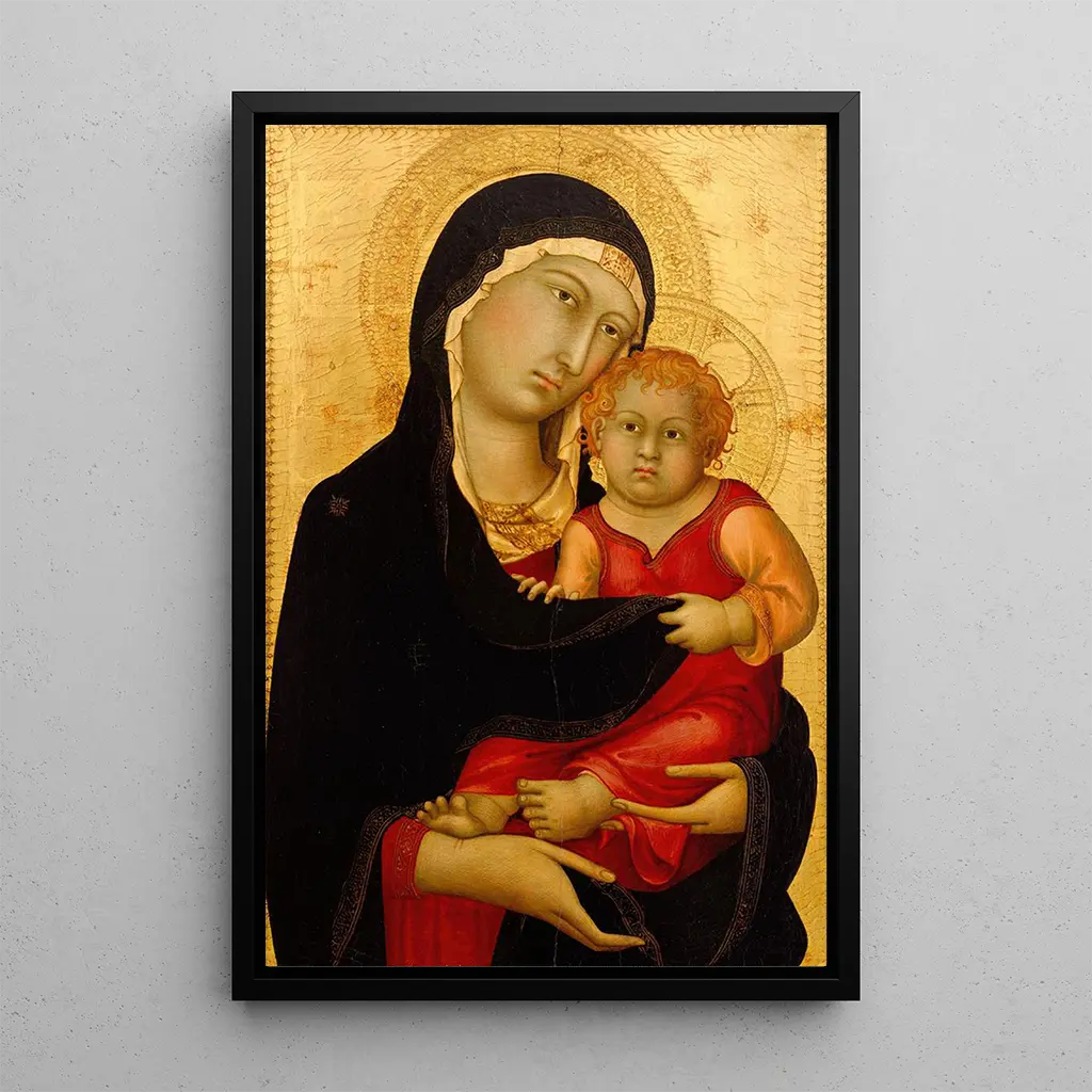 La Vierge à l'Enfant av Simone Martini är ett verk som andas sötma och lugn. I denna framställning skildras Jungfru Maria med en oändlig grace, som håller sitt barn Jesus i sina armar. De varma och gyllene färgerna skapar en ljus atmosfär, medan de noggranna detaljerna i kläder och ansikten vittnar om ett exceptionellt hantverk. Kompositionen, centrerad kring relationen mellan mor och barn, inbjuder till eftertanke och meditation, vilket gör detta konsttryck till ett verkligt mästerverk inom medeltidens konst.