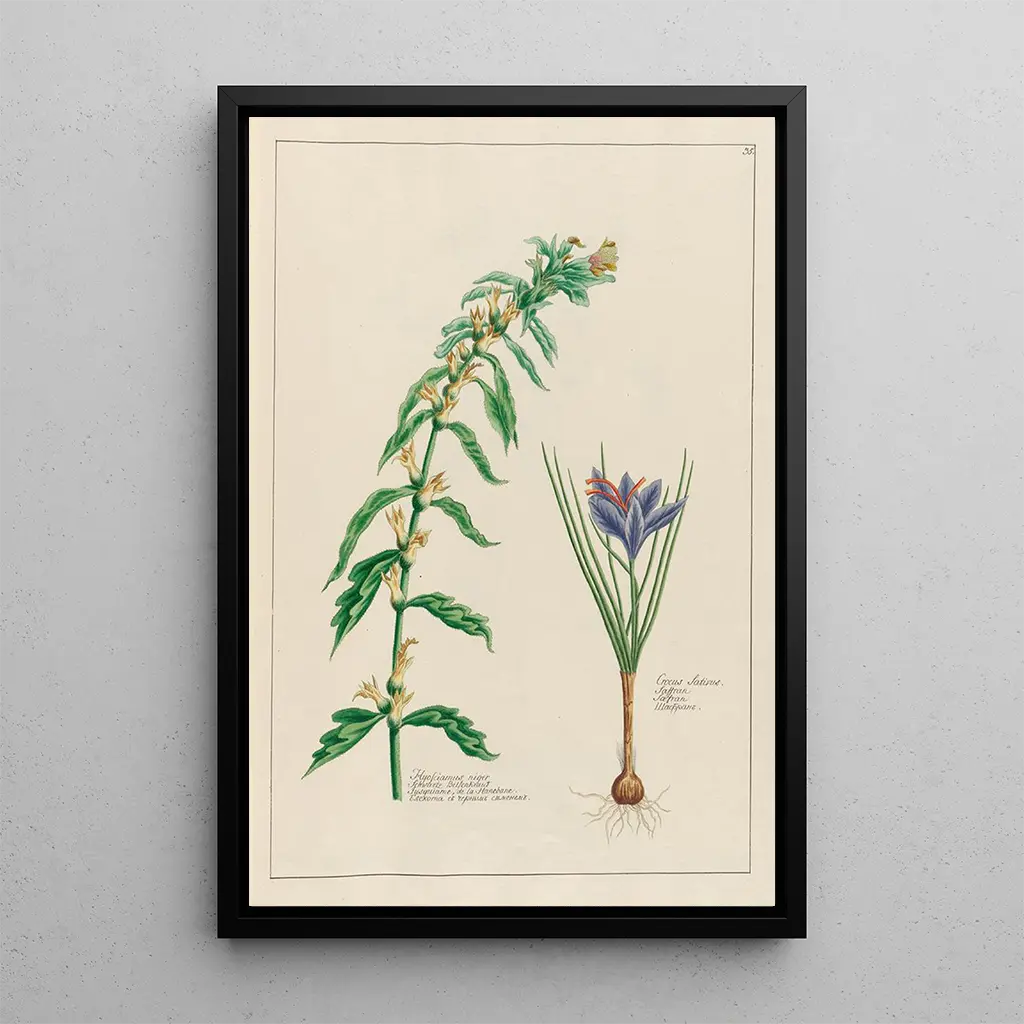 Att välja ett konsttryck av Jusquiame noire och Crocus sativus är att berika ditt boende med ett verk som är både estetiskt och uttrycksfullt. Denna tavla, perfekt för ett vardagsrum eller ett kontor, tillför en touch av sofistikering och mystik till din inredning. Utskriftskvaliteten garanterar färg- och detaljtrohet, så att varje betraktare kan uppskatta skönheten hos de växter som avbildats. Genom att integrera denna målning i ditt hem skapar du en miljö som hyllar naturen samtidigt som du tillför en konstnärlig dimension till din vardag.