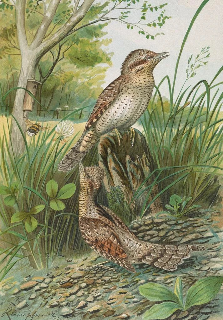 Jynx torquilla : en konsttryck av en fågel med skimrande fjäderdräkt