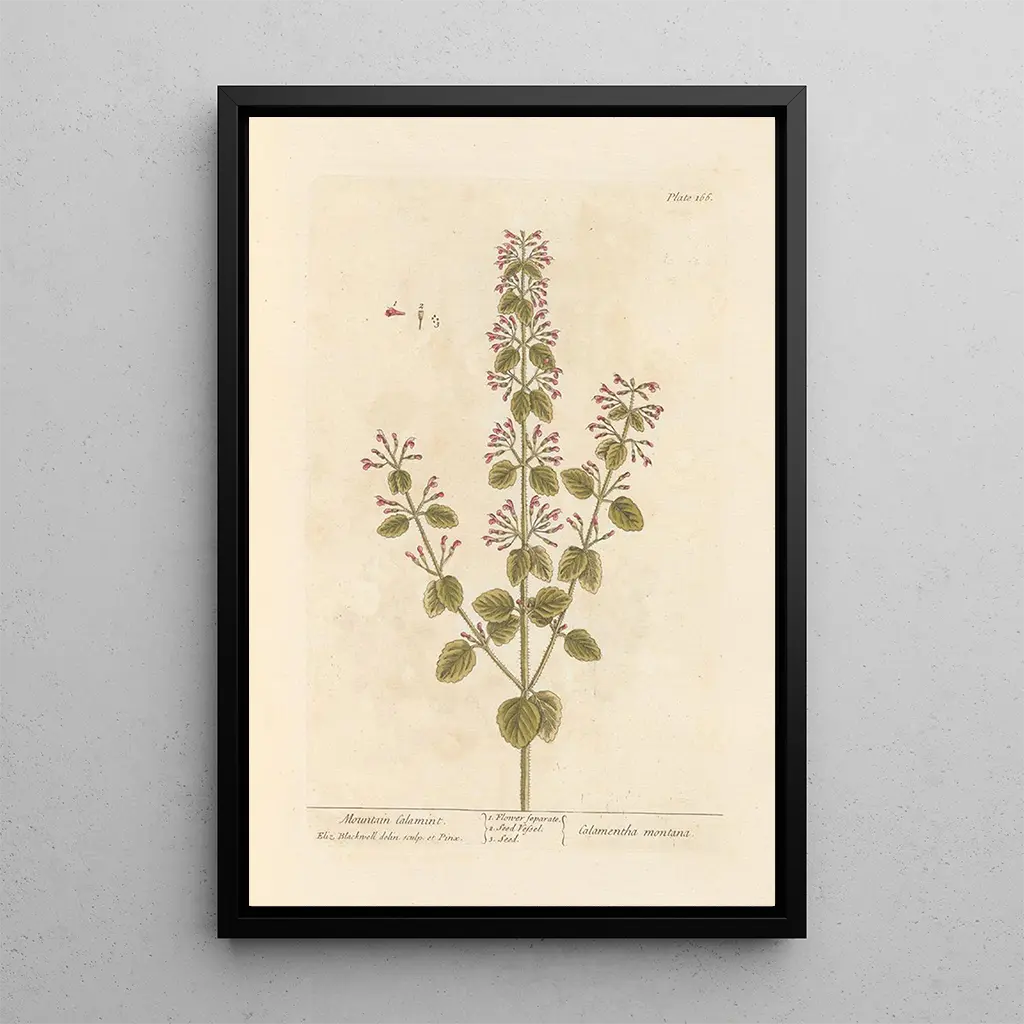 Calament des montagnes : une ode à la nature sauvage Le Calament des montagnes, œuvre d’Elizabeth Blackwell, s’illustre par sa délicatesse et sa précision botanique. La toile dépeint cette plante aromatique avec une attention minutieuse portée aux détails, révélant ses feuilles vertes vibrantes et ses fleurs délicates. Les couleurs, allant du vert profond au violet subtil, créent une atmosphère apaisante, presque méditative. La technique de l’aquarelle, associée à un trait fin, permet de capturer la beauté éphémère de cette espèce, invitant le spectateur à une contemplation silencieuse de la nature. Elizabeth Blackwell : pionnière de l’illustration botanique Elizabeth Blackwell, active au XVIIIe siècle, est reconnue comme l’une des premières femmes à se consacrer à l’illustration botanique. Son travail, influencé par les courants scientifiques de son époque, a contribué à la documentation des plantes médicinales et ornementales. Blackwell a su allier art et science, rendant ses œuvres non seulement esthétiques mais également informatives. Son engagement à représenter fidèlement la flore a marqué un tournant dans l’histoire de l’illustration botanique, plaçant son nom aux côtés des grands artistes naturalistes de son temps. Une acquisition décorative aux multiples atouts La konsttryck du Calament des montagnes est un choix décoratif idéal pour apporter une touche de nature à votre intérieur. Que ce soit dans un salon, un bureau ou une chambre, ce tableau évoque la sérénité et la beauté du monde végétal. Sa qualité d’impression garantit une fidélité aux couleurs et aux détails de l’œuvre originale, tout en offrant un attrait esthétique indéniable. En intégrant cette toile dans votre décoration, vous invitez une pièce de nature sauvage qui enrichit votre espace de vie tout en suscitant l’admiration de vos invités.
