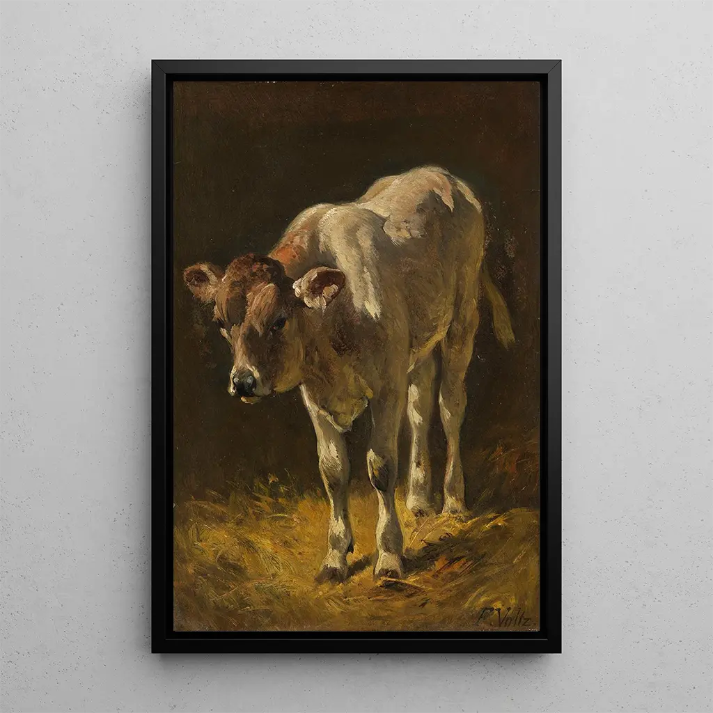 Målning av kalv i ladan - Friedrich Voltz | Konsttryck