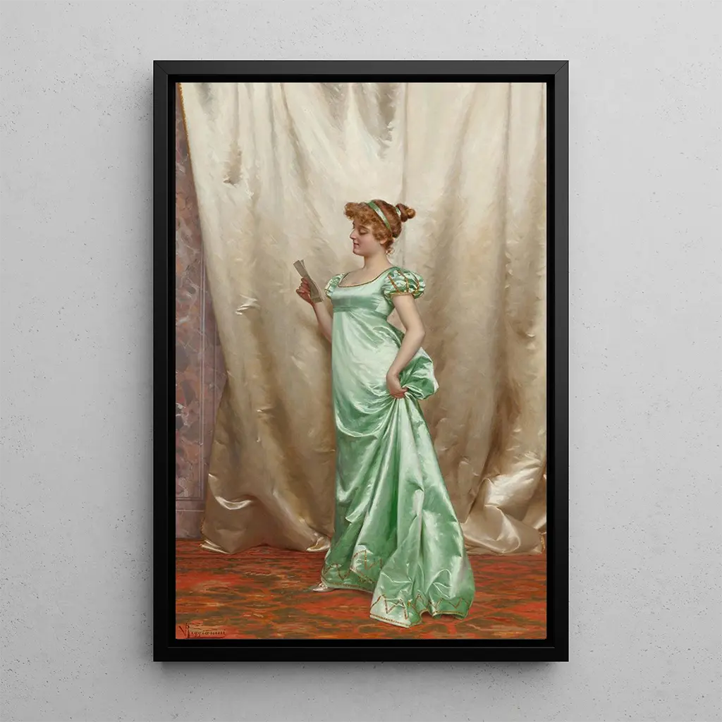 Dans cette konsttryck av La lettre d'amour, Vittorio Reggianini fångar ett ögonblick av intimitet och ömhet. Scenen skildrar en elegant kvinna, klädd i en praktfull klänning, som skriver ett brev med en fin fjäderpenna. De varma färgerna och ljusspel skapar en mjuk och nostalgisk atmosfär, som bjuder in betraktaren att fördjupa sig i den romantiska världen i slutet av 1800-talet. Reggianinis tekniska skicklighet, med sina noggranna detaljer och skickliga användning av skuggor, ger liv åt detta konsttryck och förmedlar den påtagliga känslan av ögonblicket.