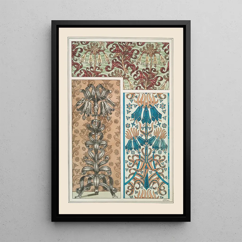Konsttrycket av Imperialkransen 3 av Maurice Pillard Verneuil utmärker sig genom sin glans och visuella rikedom. Blomstermotiven, intrikata och finstämda, skapar en fängslande harmoni som fångar blickar. De livfulla färgerna, från djupa röda till lysande gröna, framkallar en blomstrande natur. Akvarelltekniken, som är karakteristisk för Verneuil, ger en lätthet och flyt som gör detta konstverk nästan levande. Varje element tycks dansa på duken och inbjuder betraktaren att fördjupa sig i en värld av skönhet och lugn.