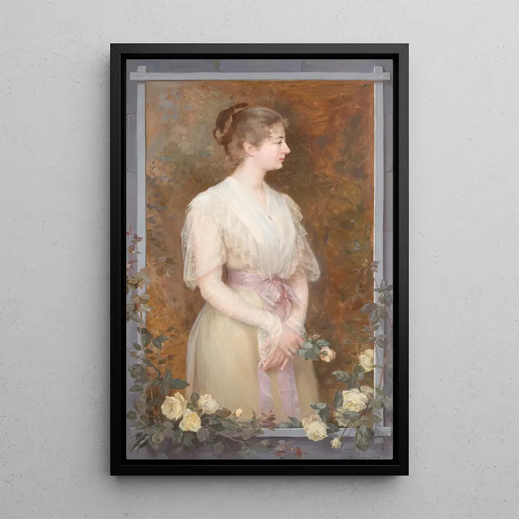 I "Cloître" fördjupar sig Timoléon Lobrichon i ett fridfullt och eftertänksamt utrymme, där arkitektur möter naturen. De majestätiska bågarna och ljus- och skuggspel skapar en mystisk atmosfär som inbjuder till meditation. De mjuka och harmoniska färgerna på duken, från varma beige till lugnande grönt, förstärker denna känsla av lugn. Lobrichon lyckas fånga själva essensen av detta heliga rum, där tiden tycks stå stilla, och erbjuder betraktaren en flyktväg till kontemplation.