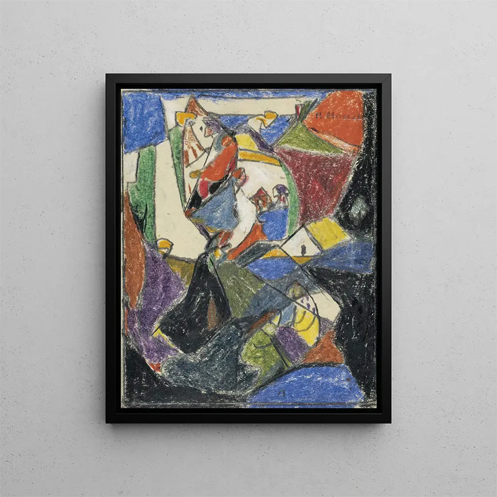Konsttryck Composition - Adolf Hölzel utgör en fascinerande ingång till den abstrakta världen av modern konst. När man fördjupar sig i detta verk dras betraktaren omedelbart till harmoni i former och färger som breder ut sig som en visuell dans. Hölzel, en ikonisk figur inom avantgardet, lyckas uttrycka djupa känslor genom en djärv syntes av geometri och färg. Detta verk representerar inte bara en estetisk utforskning, utan också en reflektion över perception och verklighet, och bjuder in varje person att återupptäcka sitt eget perspektiv på världen.