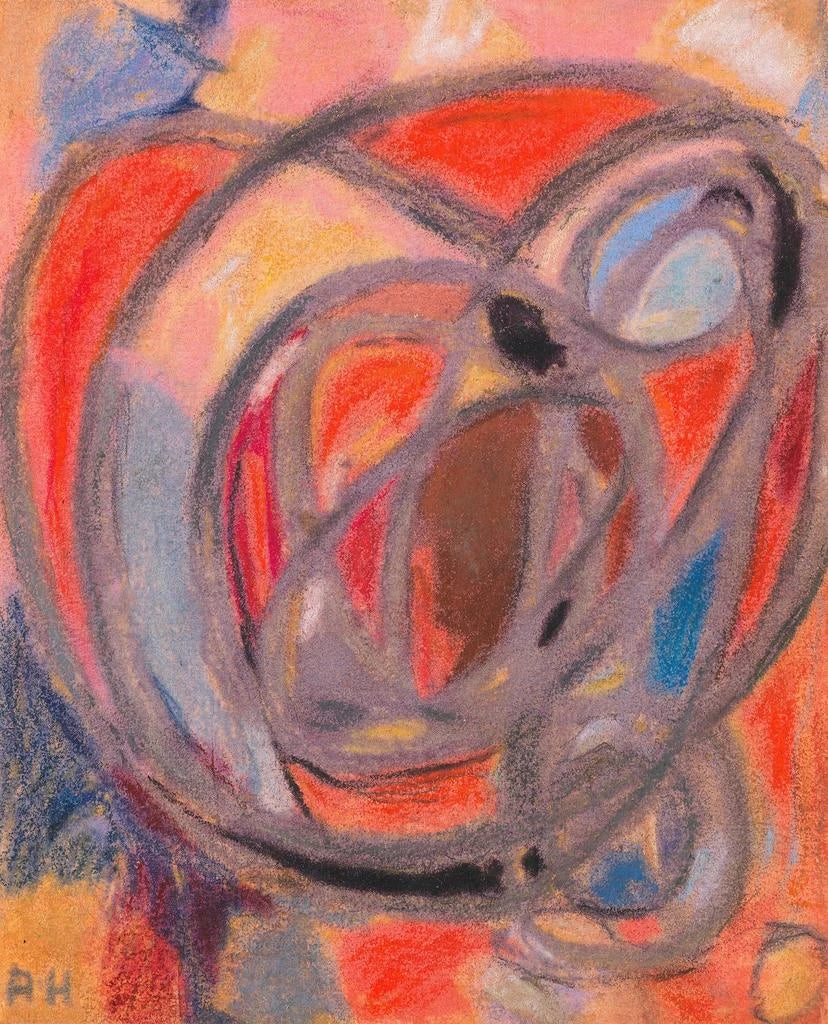 I denna komposition leker Hölzel skickligt med runda och ovala former, och skapar en dialog mellan de olika elementen som verkar sväva på duken. Färgpaletten, noggrant utvald, svänger mellan mjuka nyanser och mer livfulla toner, och ger en dynamisk energi som fångar ögat. Kontrasten mellan former och färger bjuder in betraktaren till en introspektiv eftertanke, där varje blick avslöjar nya känslor och sensationer. Lättheten i formerna och flytigheten i konturerna vittnar om en noggrann estetisk strävan, där konstnären söker att uttrycka en idé om rörelse och förvandling. "Komposition av runda och ovala former" utmärker sig genom sin förmåga att framkalla känslor av mildhet och lugn, samtidigt som den väcker reflektion kring interaktionen mellan utrymme och färg.