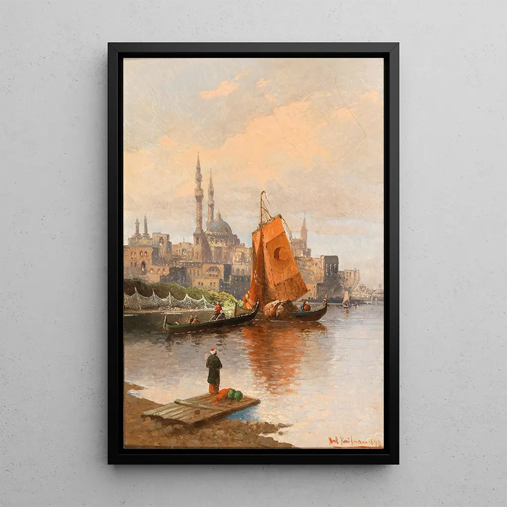 Konsttrycket av Partie de Constantinople fördjupar oss i ett förtrollande konstverk, där det gyllene solljuset reflekteras på Bosporen. Karl Kaufmann lyckas fånga essensen av denna mytiska stad, med dess silhuetter av moskéer och traditionella båtar som seglar lugnt. De livfulla färgerna och de minutiösa detaljerna i detta verk framkallar en atmosfär av lugn och mystik, och bjuder in betraktaren att utforska Konstantinopels under. Varje element i kompositionen tycks vibrera av ett eget liv, vilket vittnar om konstnärens obestridliga talang.